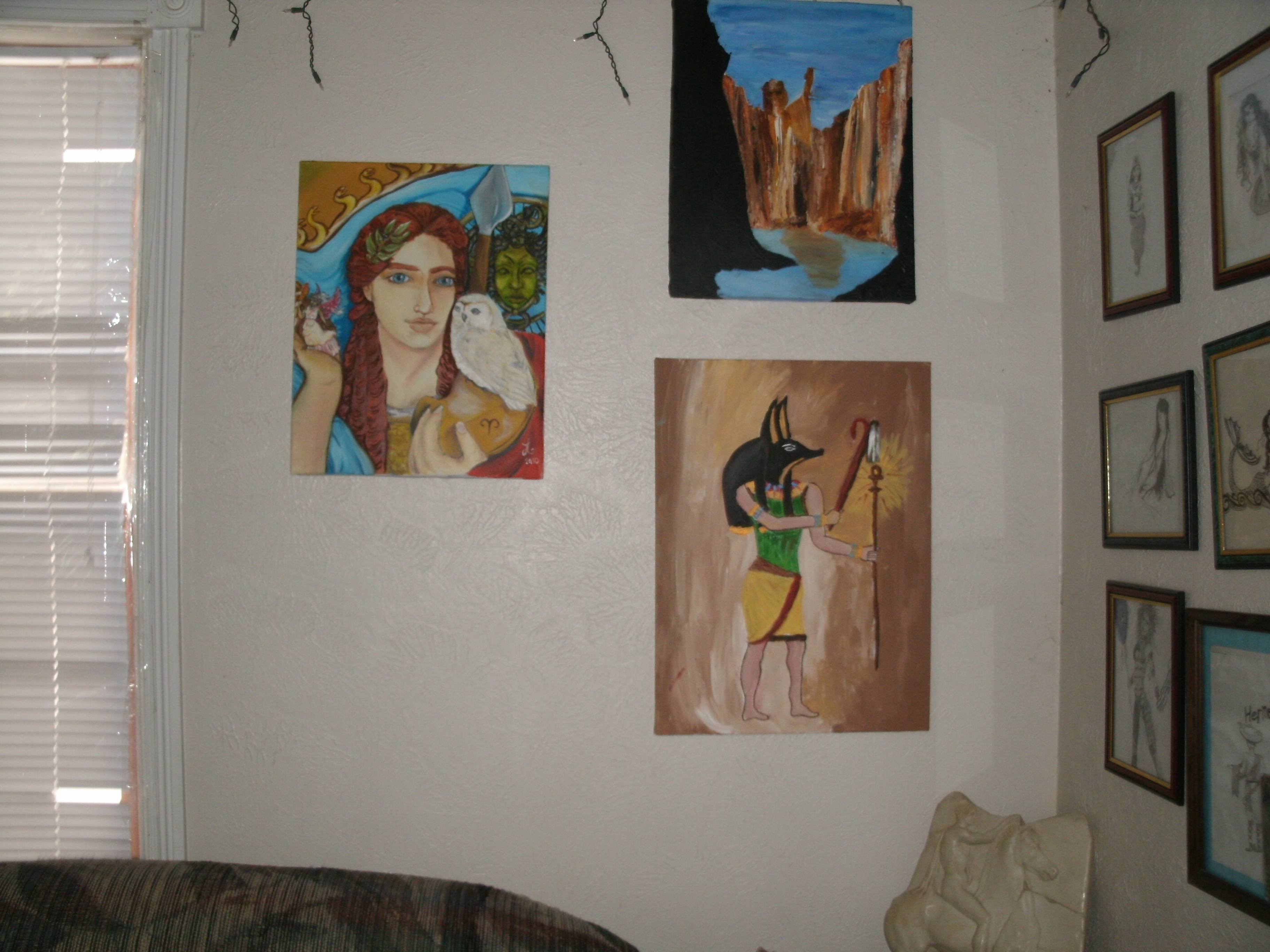 The other two paintings I did myself. The top one is of a mountain/river God coming out of the rock. The bottom one is of of Anubis, obvisously.