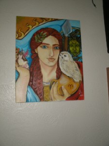 I’m very happy. Yesterday I received this beautiful painting of Athena. The artist’s name is Lykeia, and she still has a few painting available for sale. Her gorgeous renditions of Ares, Demeter and Poseidon are available here, where you can also take a look at some of her other artwork. Check her out!