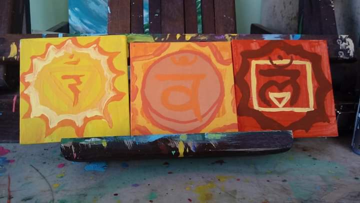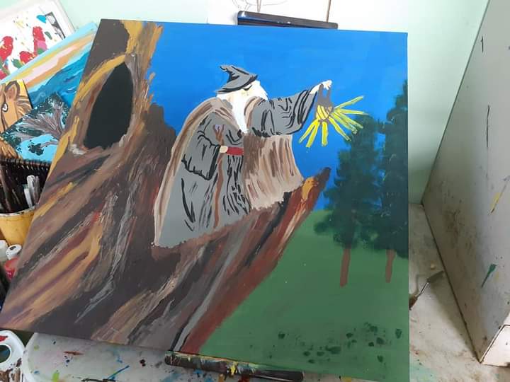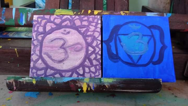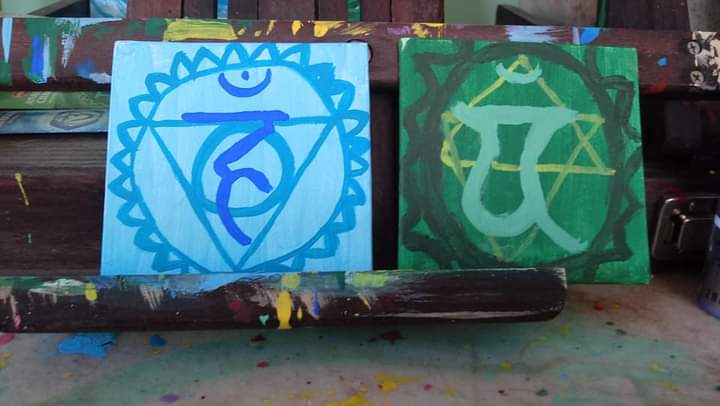 And Odin again, this time as the Hanged Man, hanging on Yggdrasil to win the Runes. “Equinox “. I hate that I couldn’t get it perfectly symmetrical but I had to force myself to stop fucking with it bc it was gonna keep getting worse.This was my first attempt at drawing Odin. The hands are horrid. After this one, I started practicing drawing hands just by themselves. Hands are DIFFICULT to draw.This shaman was supposed to be a woman, but ended up with very sharp, manly features by mistake, so I just went with it and added the Adam’s apple and everything. THIS one I started in the spring, but it’s sat unfinished all summer. I JUST now finished it a few weeks ago. I’ve been doing a lot of white, unfinished eyes, for some reason. They strike a werid mystical tone.mixed medium, no title yet. Had this image in my head for literally YEARSThis little gnome and mouse is actually an imitation of a German artist’s style, whose name escapes me at the moment but I’ll try to hunt down. EDIT: it’s Erich Heinemann.Chinese Dragon.Somebody gave me a box of canvases of all sizes, and for a while, I had no idea what to do with these tiny ones. I think they ar 2×2? Anyway I finally made little chakra symbols!I think out of all of them, I did the best job on the throat chakra one. I added a bit of metallic paint to the 3rd eye and crown chakras, to make them shine and stand apart from the others a little.
